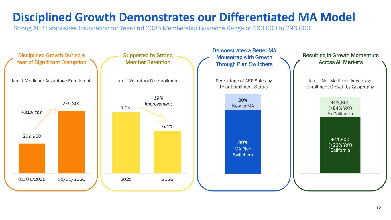 The Company has completed the Annual Enrollment Period (“AEP”) for 2026 and currently estimates that it will have approximately 275,300 members enrolled in its HMO and PPO contracts (“Health Plan Members”) as of January 1, 2026. This figure represents Health Plan Member growth of approximately 31% year-over-year when compared with the Company's Health Plan Membership as of January 1, 2025. Additionally, the Company expects to have 290,000 to 296,000 members as of December 31, 2026, representing approximately 24% to 27% growth relative to the midpoint of the Company’s latest Health Plan Membership guidance for year-end 2025 provided on October 30, 2025.